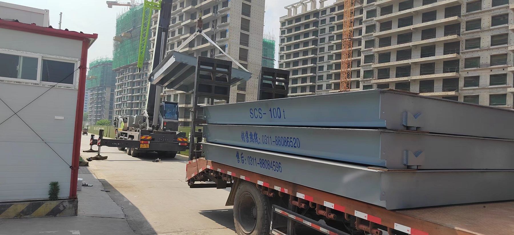 石家莊囯赫控股,古城西路囯赫天璽工地項(xiàng)目,3x16米100噸地磅安裝完畢,硬化路面安裝,后做坡道,簡單快捷.